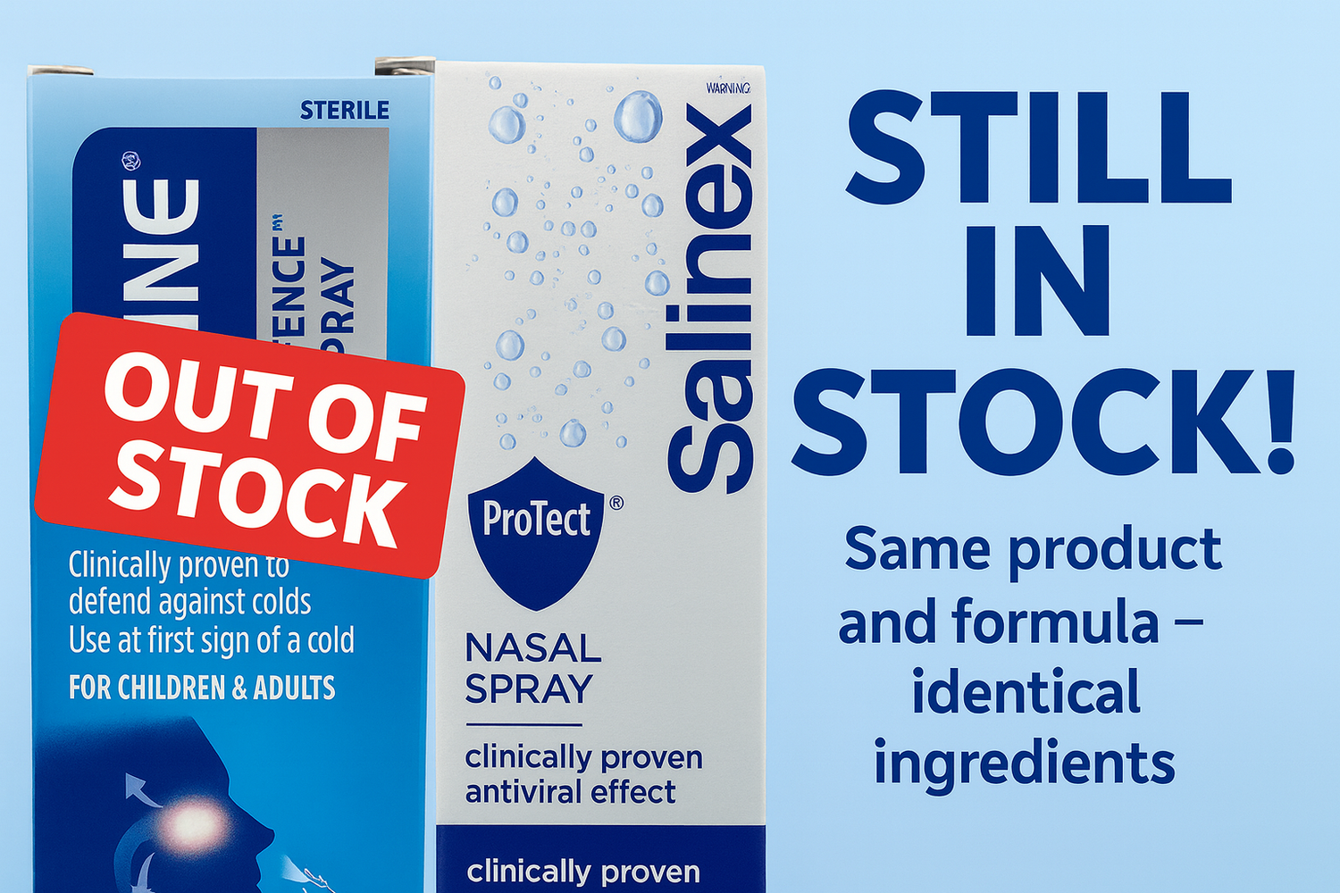 Salinex Protect is available. Utilizing the same formula and manufacturer as Betadine Cold Defense Nasal Spray, currently unavailable until mid-December. Ensure protection with Salinex Protect.